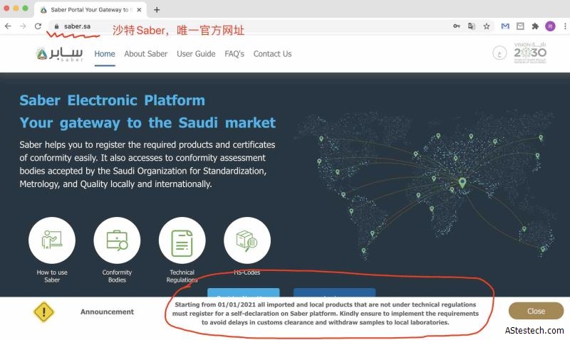 从2021年1月1日起,所有不受技术法规约束的进口和本地产品必须在Saber平台上注册自我声明。请确保执行要求,以避免在清关和取样到沙特当地的实验室检测。