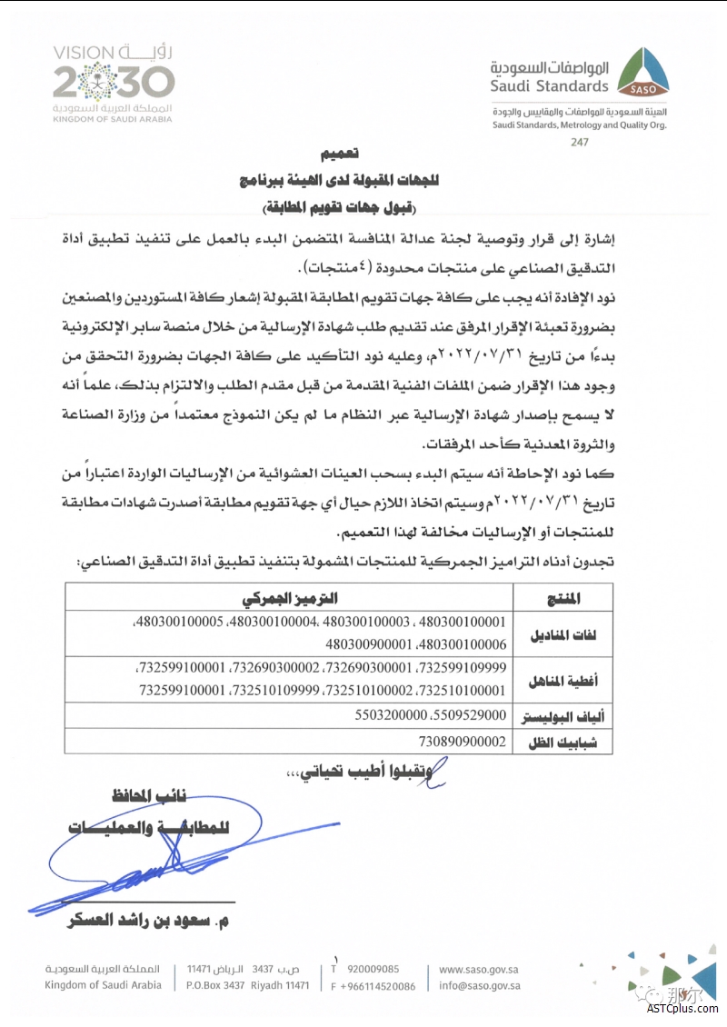 Referring to SASO’s latest announcement, starting from 31st of July once applying for a shipment certificate for any of the below HS code, the attached declaration should be provided (signed and stamped by Ministry of Industry and Mineral Resources) and we will not be able to accept any shipment request without it , Thank you.