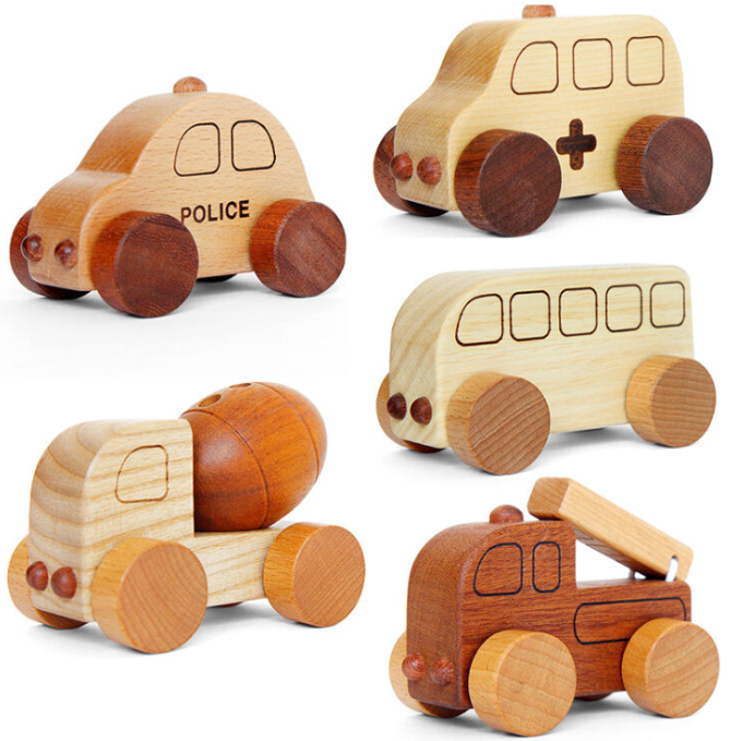 Wooden toys: wooden building blocks, wooden vehicle toys, etc.